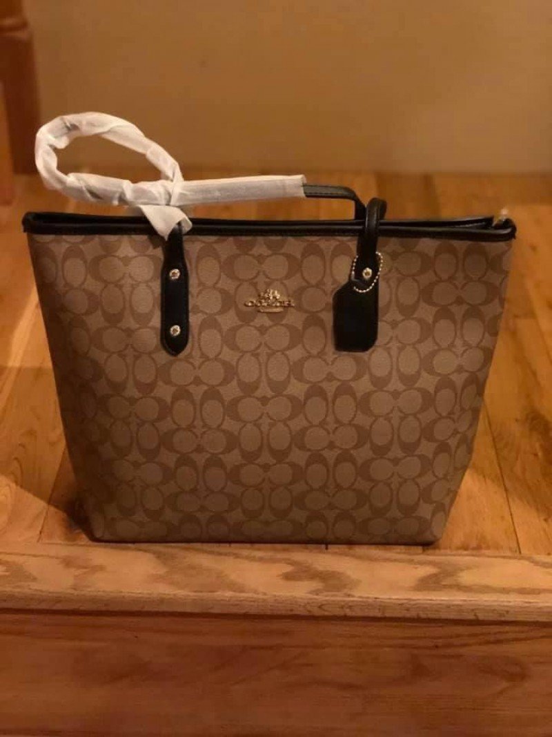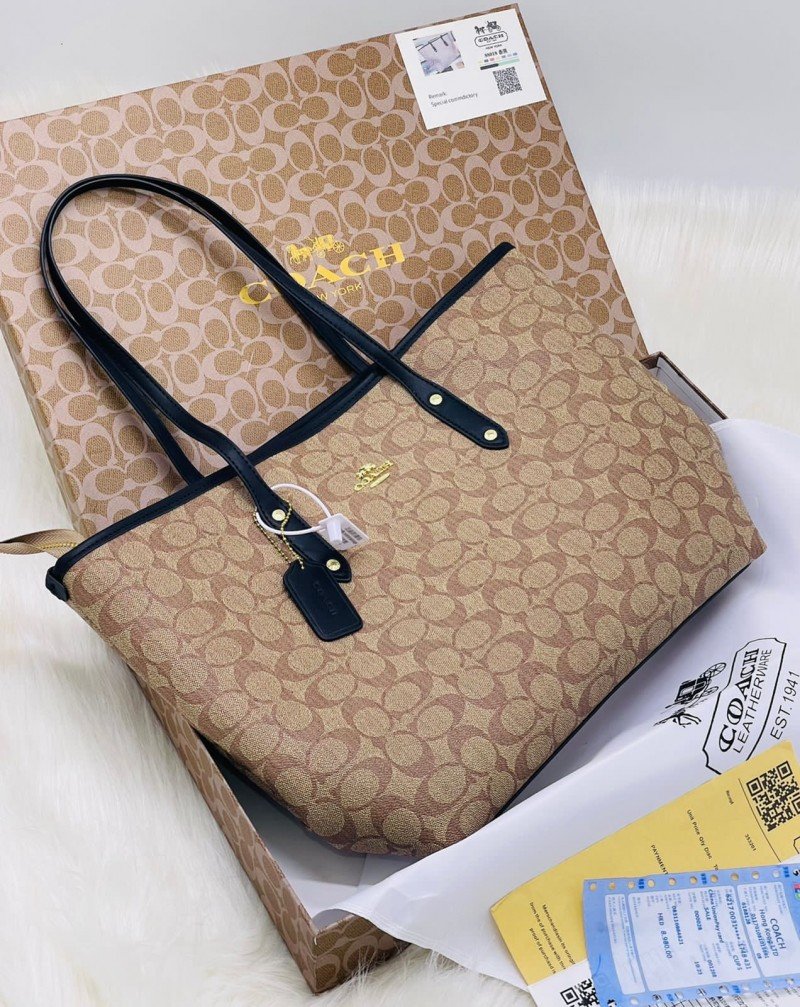 COACH TRENDY SIGNATURE SATCHEL BAG ( COFFEE BROWN )