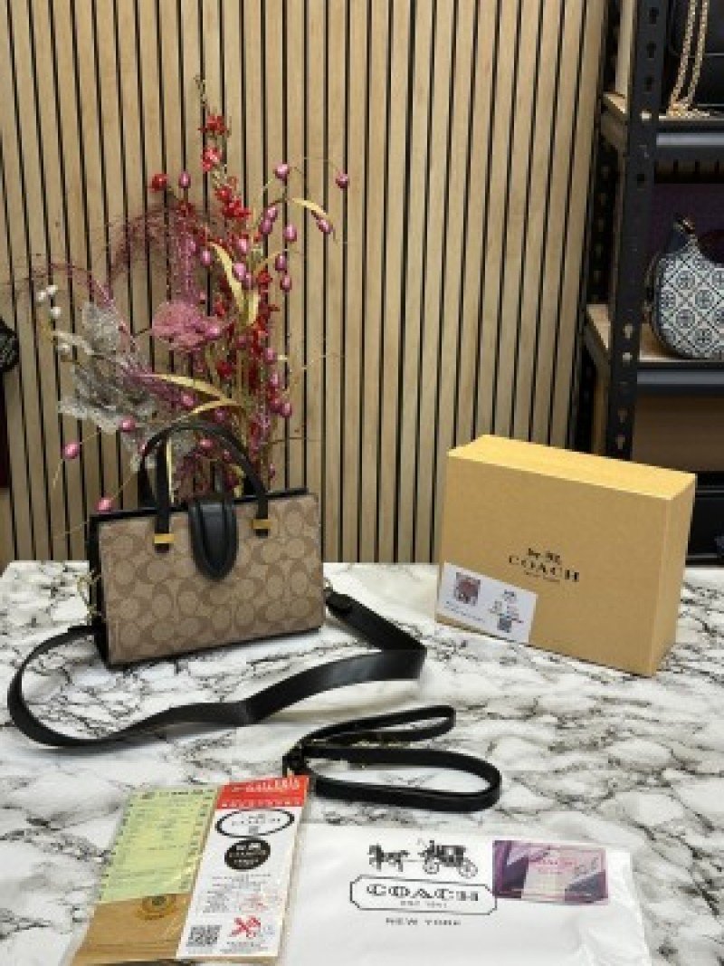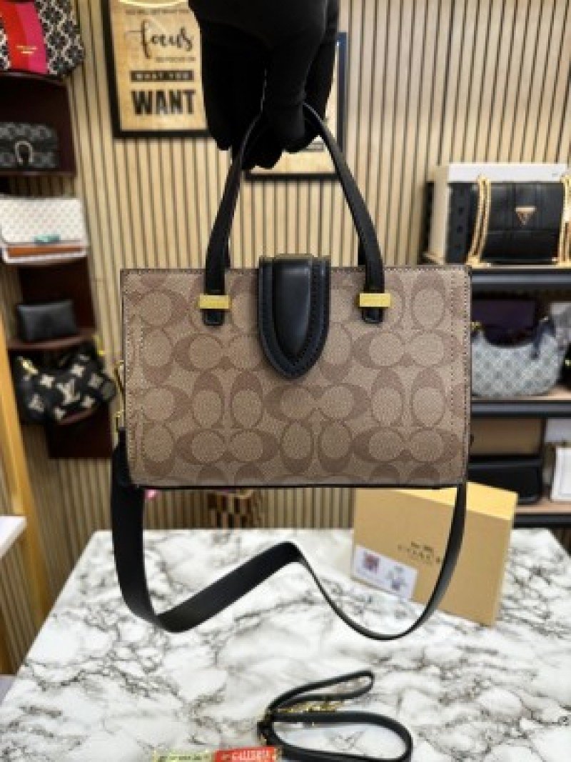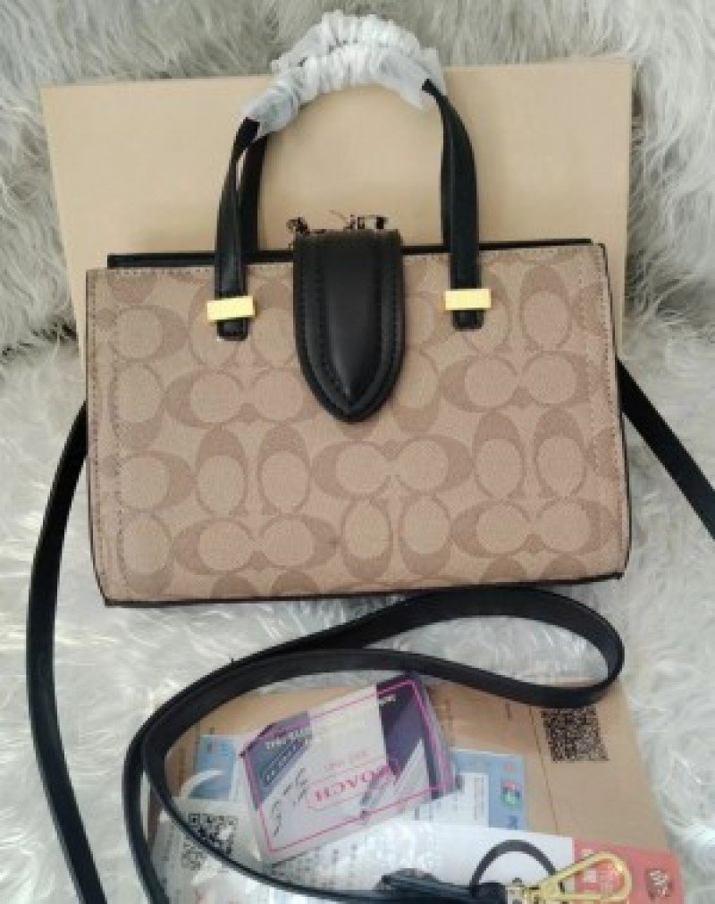 / COACH TRENDY SIGNATURE SATCHEL BAG ( APRICOT BLACK )