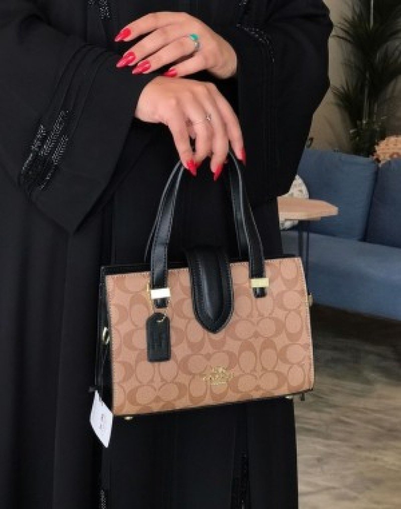 COACH TRENDY SIGNATURE SATCHEL BAG ( APRICOT BLACK ) quantity