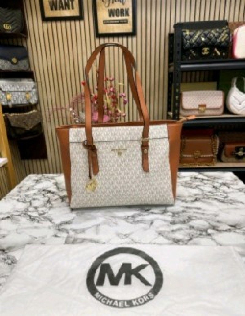 MICHAEL KORS CHARLOTTE LARGE SAFFIANO ( BIEGE BROWN )